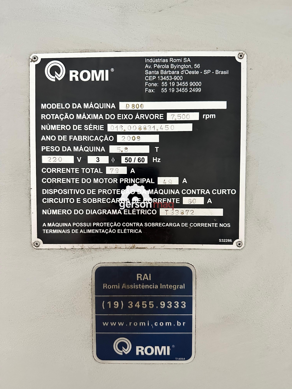 CENTRO DE USINAGEM ROMI D800 ANO 2008