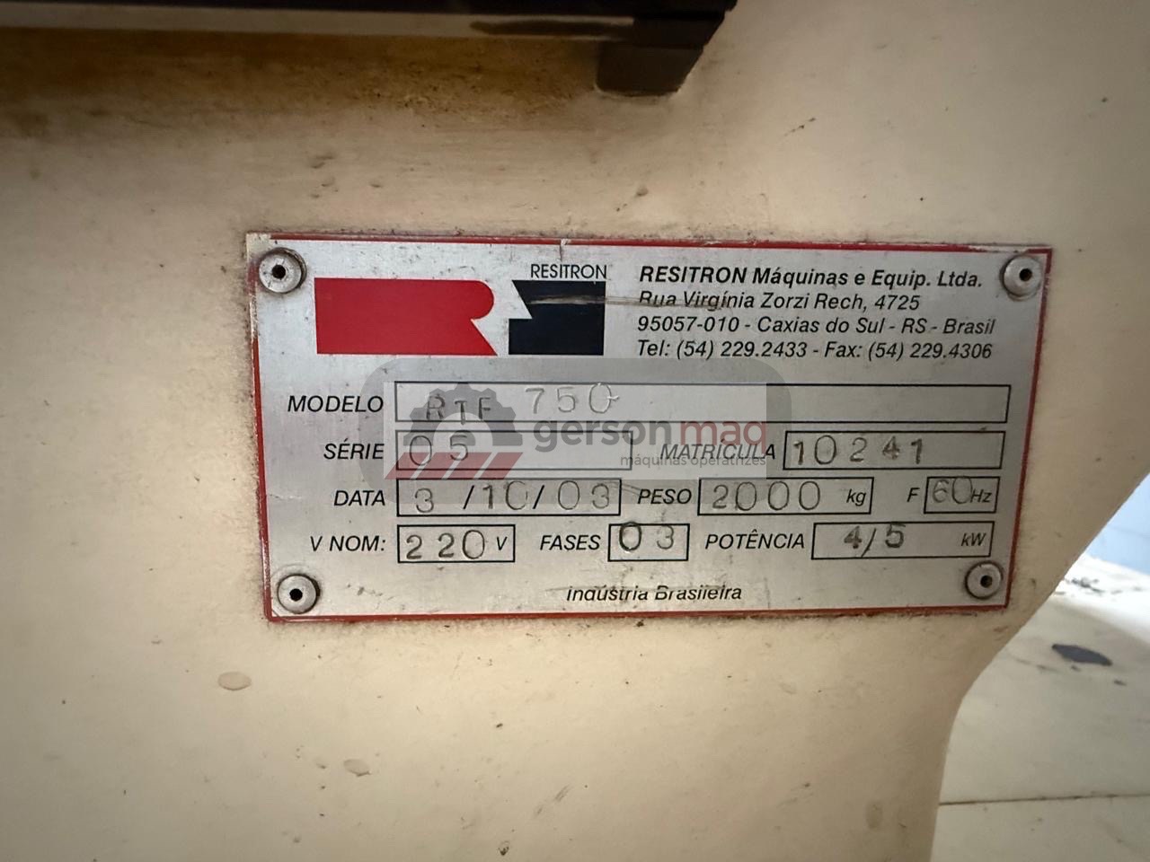ELETROEROSAO A PENETRACAO MARCA RESITRON BF 800 - ano 2001 - REVISADA