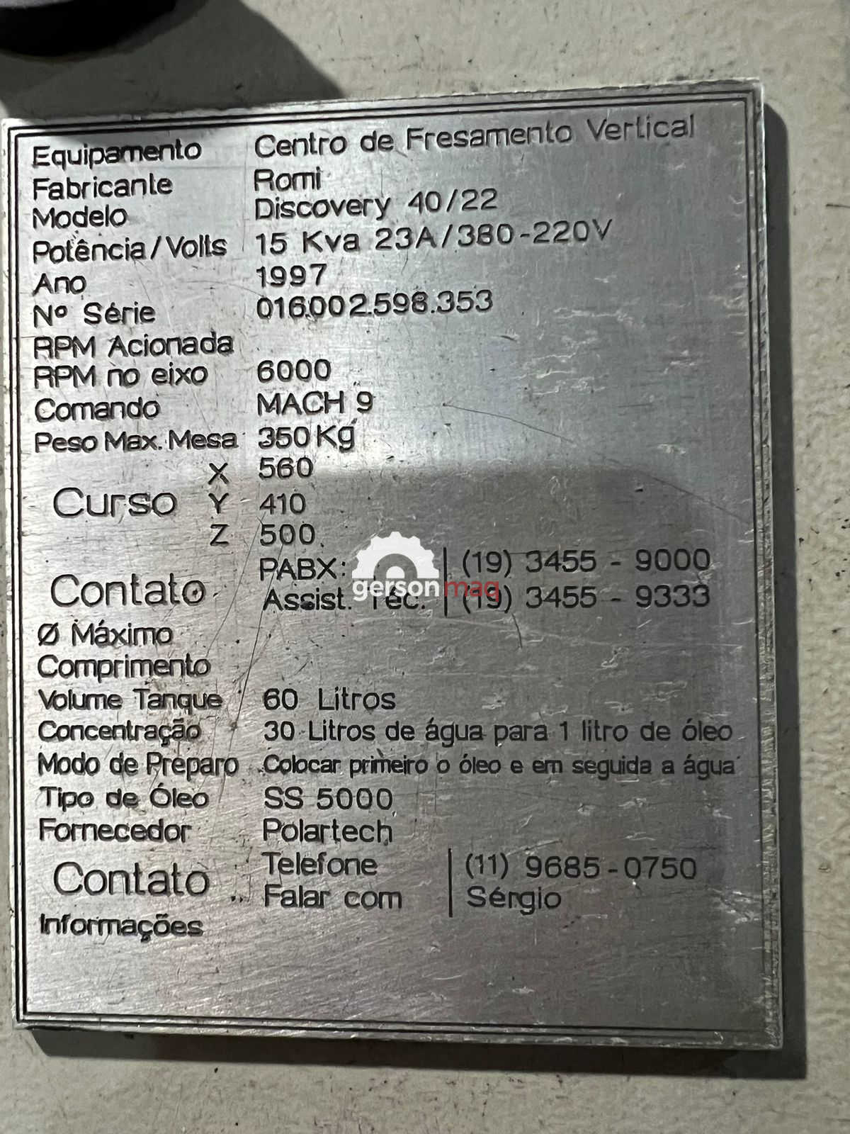 CENTRO DE USINAGEM ROMI D800 COM REF INTERNA COM 3 MIL HRS DE USO