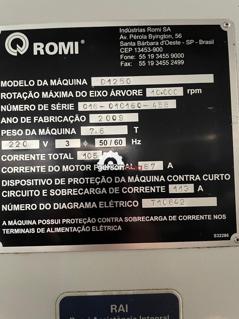 CENTRO DE USINAGEM ROMI D760 ANO 2001 - SIEMENS