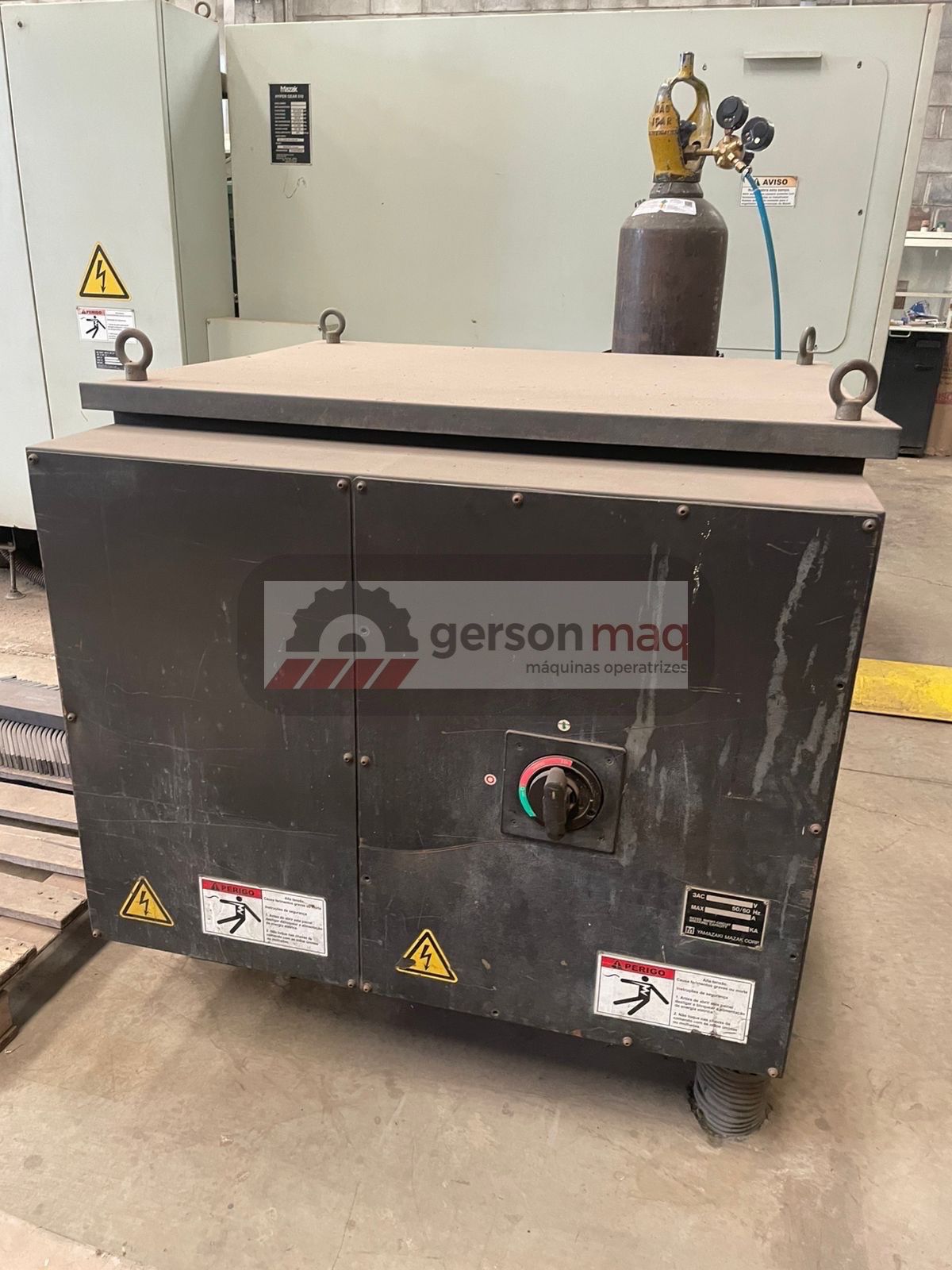 Manutenção preventiva em dia, máquina acompanha coletor de pó e chiller de resfriamento.
