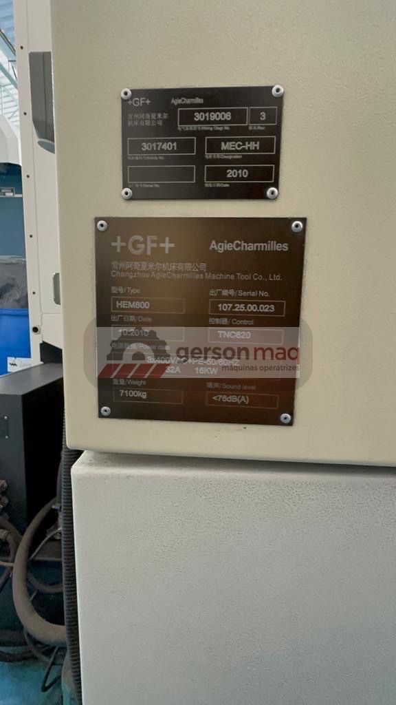 MARCA: MIKRON MODELO: HEM 800 ANO DE FABRICAÇÃO: 2010 COMANDO NUMÉRICO: HEINDENHAIN TNC620 CONE: ISO40 CURSO EM X: 800 mm CURSO EM Y: 500 mm CURSO EM Z: 540 mm ROTAÇÃO MÁXIMA: 9.000 rpm MAGAZINE ARM TYPE - 24 POSIÇÕES