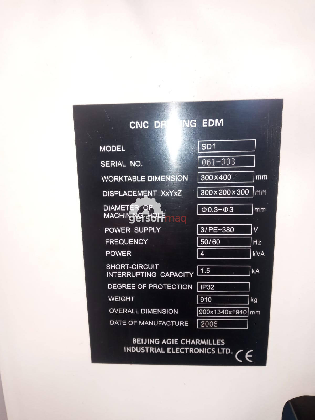 ELETROEROSAO DE FURO RAPIDO ACTSPARK CHARMILLES SD1 ANO 2004