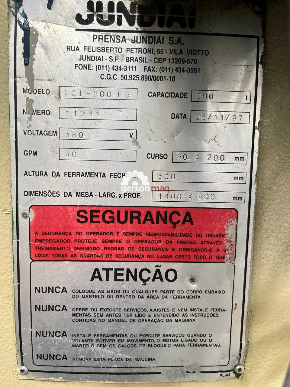 PRENSA EXCENTRICA MARCA JUNDIAI LA200 F-7 200 TON